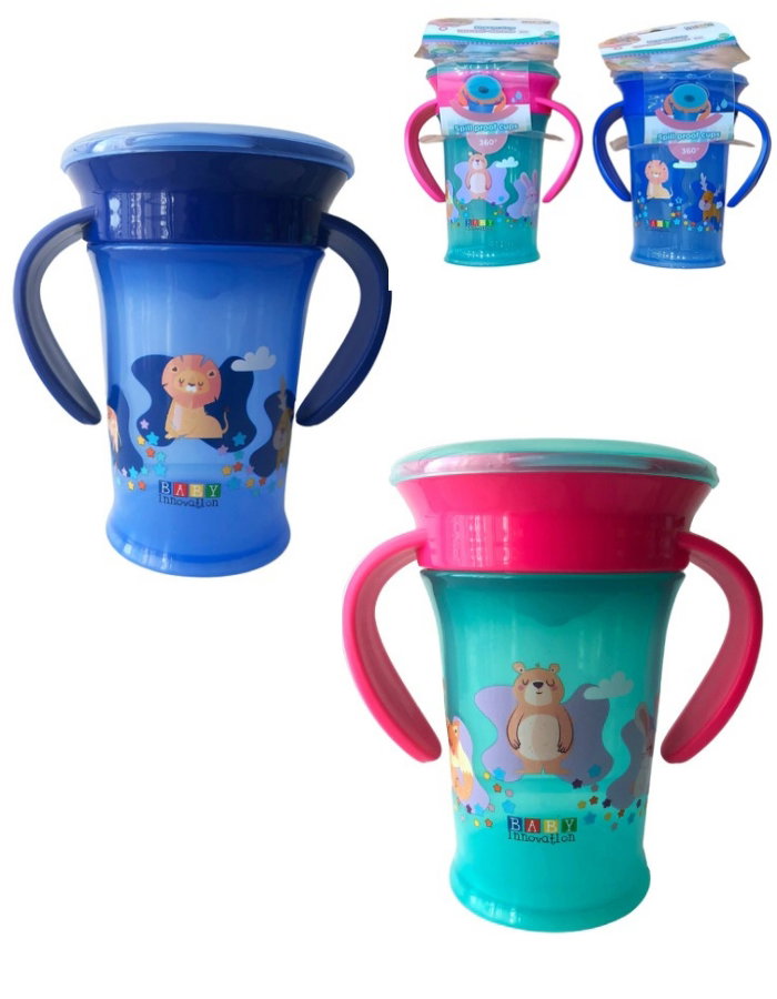 Vaso con asas y tapa, ideal para cuando comienzan a beber líquidos de manera independiente.