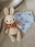 Conejito amigurumi, realizado en hilo de algodón hipoalergénico, con volado marrón en el cuello